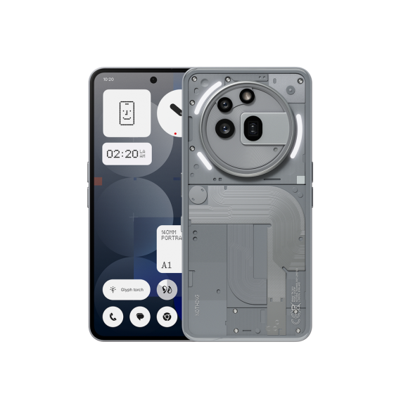 التصميم: ظهر شفاف مزود بثلاث شرائط LED (واجهة Glyph) قابلة للتخصيص للإشعارات والمؤثرات البصرية .
